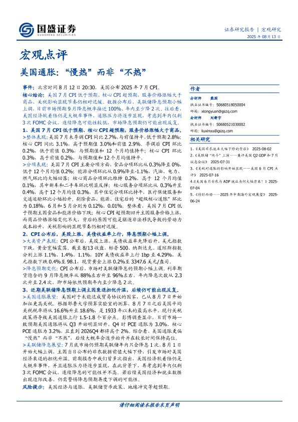 【国盛证券】【20250813】美国通胀:“慢热”而非“不热”-4页