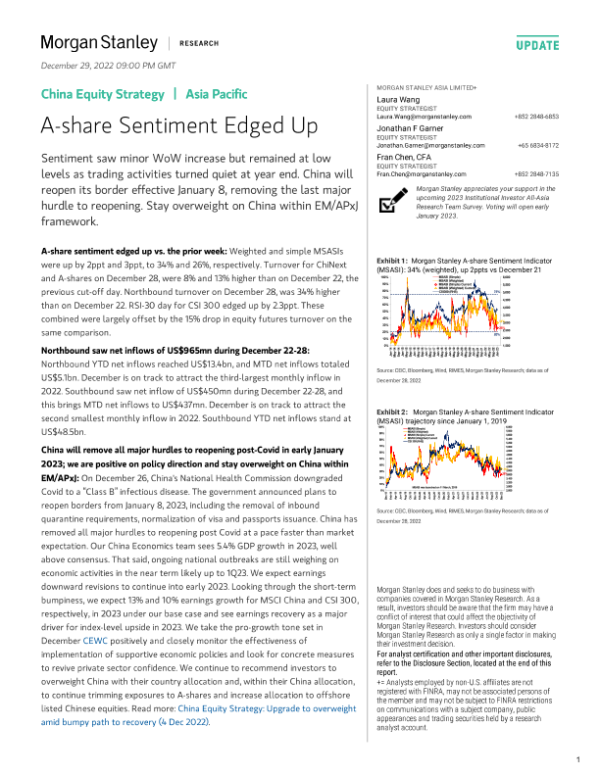 【Morgan Stanley】【20221229】Morgan Stanley-China Equity Strategy A-share Sentiment Edged Up-10页