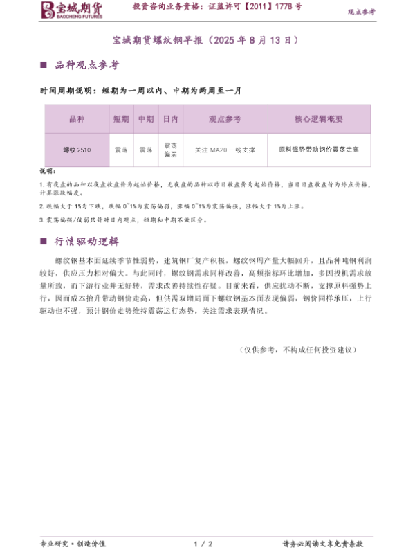 【宝城期货】【20250813】宝城期货螺纹钢早报-2页