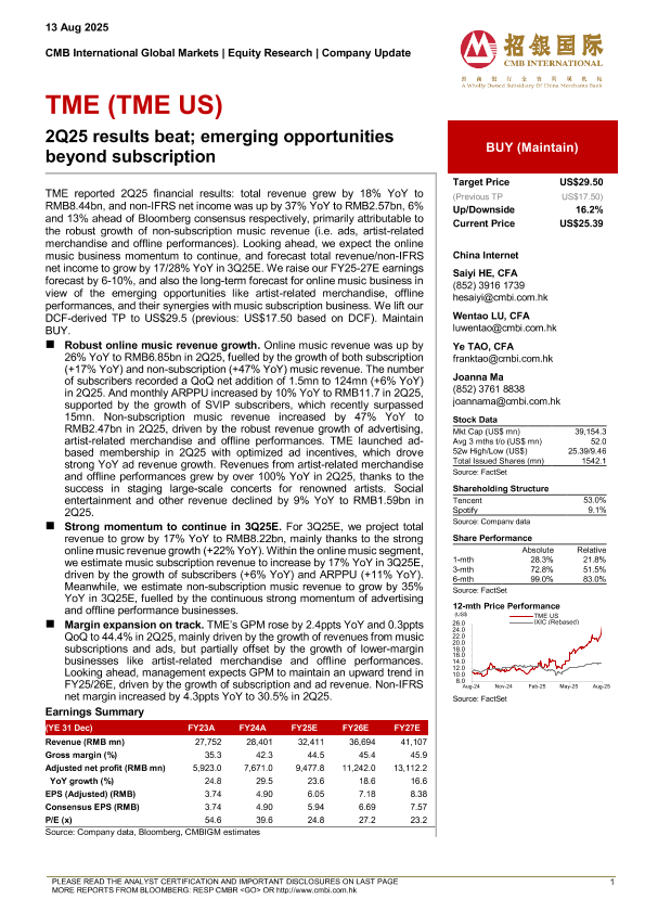 【CMB International】【20250813】TME-2Q25 results beat; emerging opportunities beyond subscription-6页
