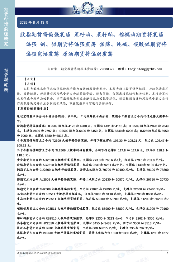 【国泰君安期货】【202508】股指期货将偏强震荡 菜籽油、菜籽粕、棕榈油期货将震荡偏强 铜、铝期货将偏强震荡 焦煤、纯碱、碳酸锂期货将偏强宽幅震荡 原油期货将偏弱震荡-37页