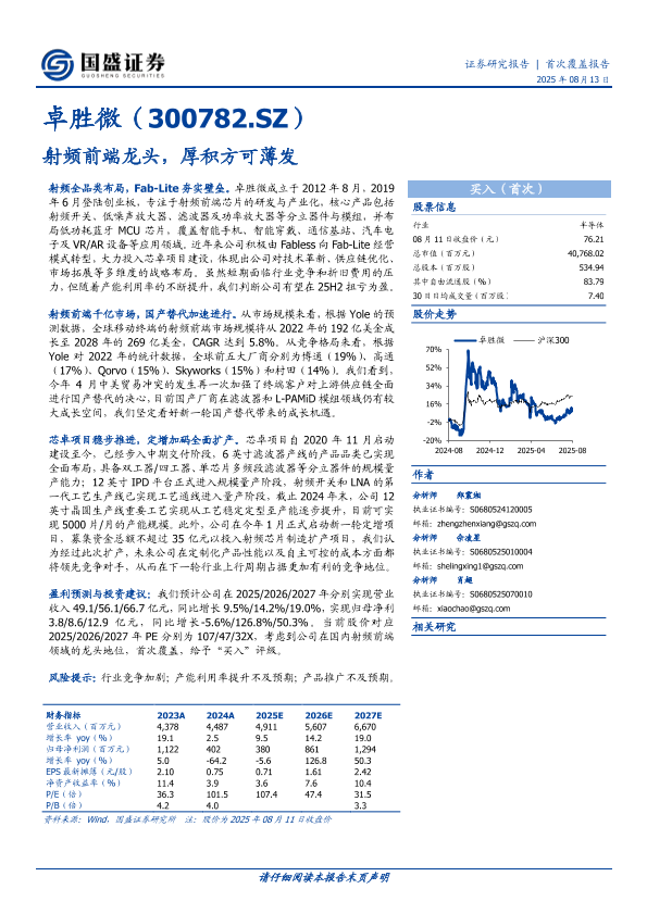 【国盛证券】【20250813】卓胜微:射频前端龙头,厚积方可薄发-23页