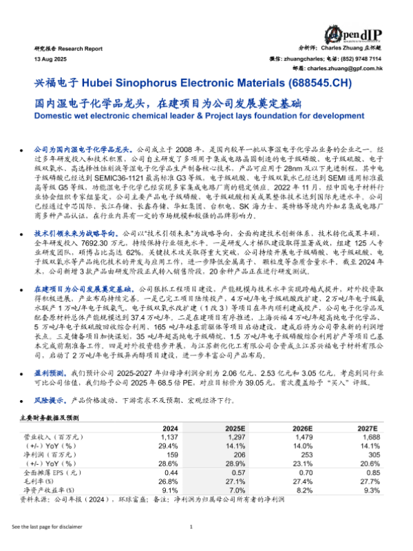 【环球富盛理财有限公司】【20250813】国内湿电子化学品龙头,在建项目为公司发展奠定基础-6页