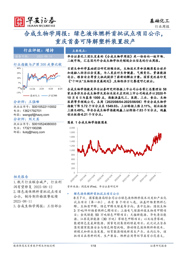 【华安证券】【20250814】合成生物学周报:绿色液体燃料首批试点项目公示,重庆首套可降解塑料装置投产-18页