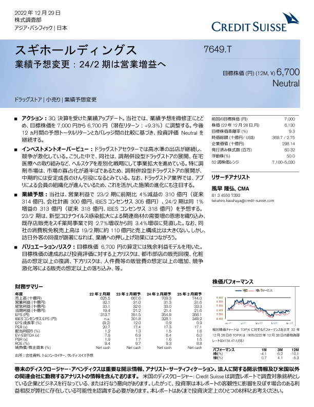 【クレディ・スイス証券株式会社】【20221229】スギホールディングス-11页