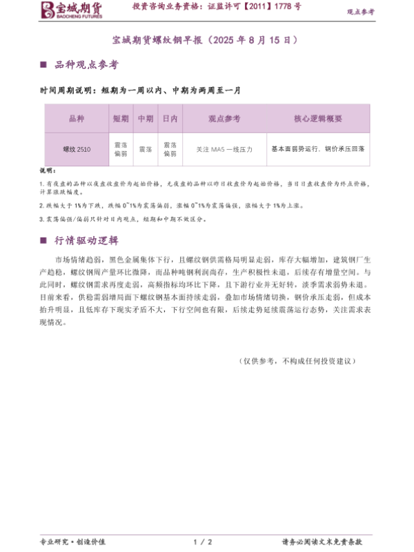 【宝城期货】【20250815】宝城期货螺纹钢早报-2页