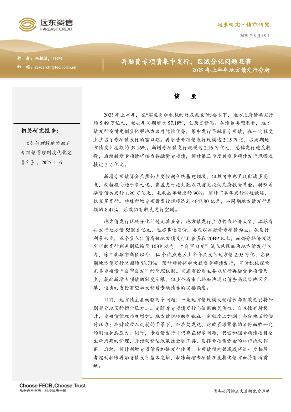 【远东资信】【20250815】2025年上半年地方债发行分析_再融资专项债集中发行_区域分化问题显著-13页