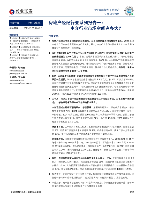 【兴业证券】【20250802】房地产经纪行业系列报告一:中介行业市场空间有多大?-19页