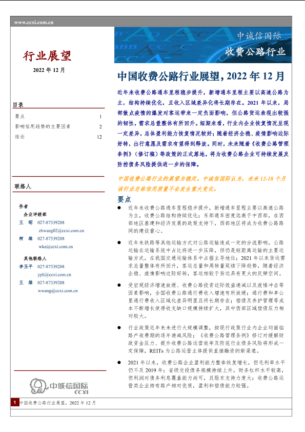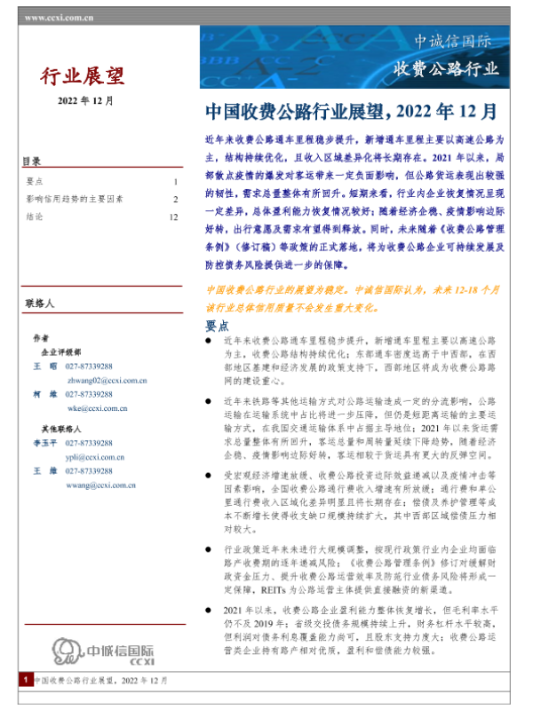 【中诚信国际】【202212】中国收费公路行业展望-16页