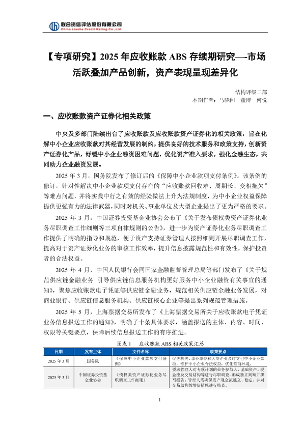 【联合资信】【2025】2025年应收账款ABS存续期研究—-市场活跃叠加产品创新,资产表现呈现差异化-14页