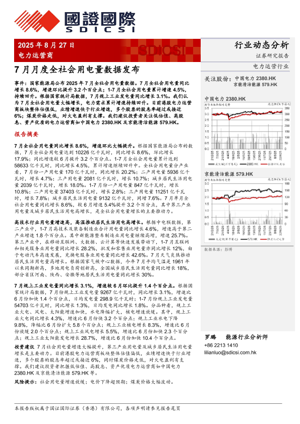 【国证国际】【20250827】中国电力,京能清洁能源-7月月度全社会用电量数据发布-3页