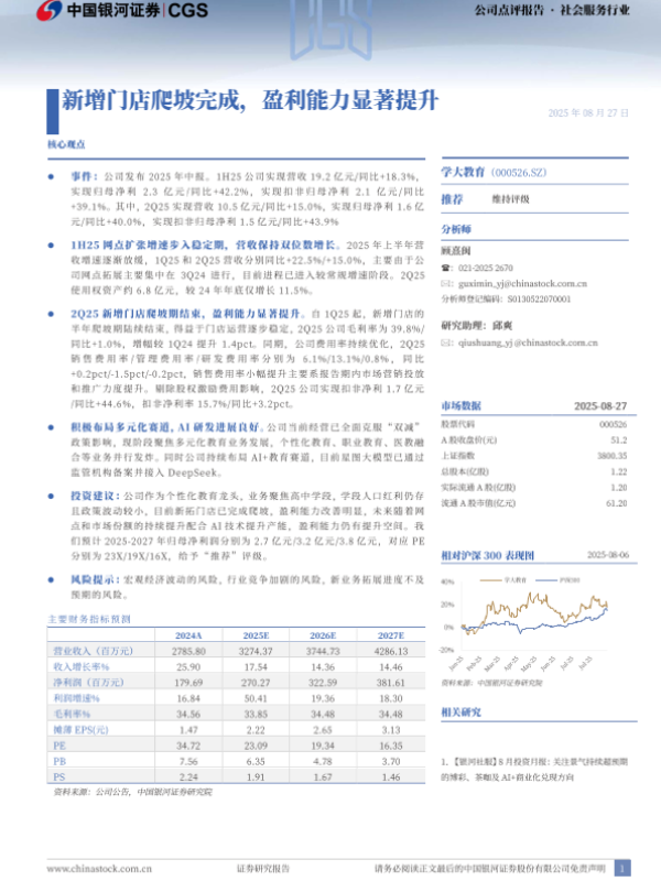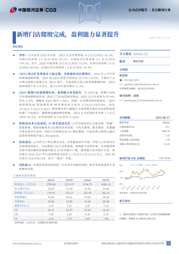 【银河证券】【20250827】学大教育-新增门店爬坡完成,盈利能力显著提升-3页