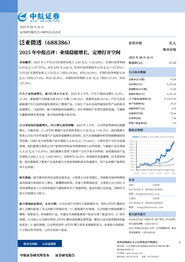 【中航证券】【20250826】泛亚微透-2025年中报点评 业绩稳健增长,定增打开空间-5页