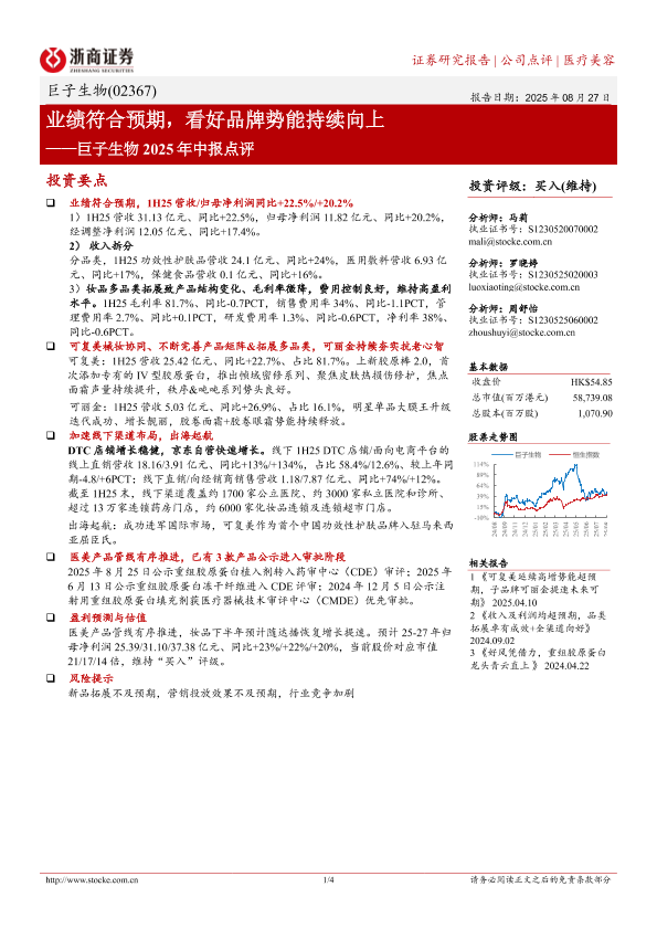 【浙商证券】【20250827】巨子生物-巨子生物2025年中报点评_业绩符合预期_看好品牌势能持续向上-4页
