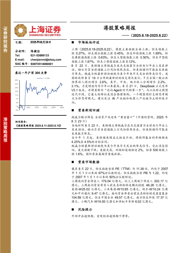 【上海证券】【20250828】港股策略周报-2025.8.18-2025.8.22-5页