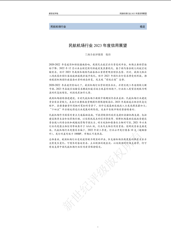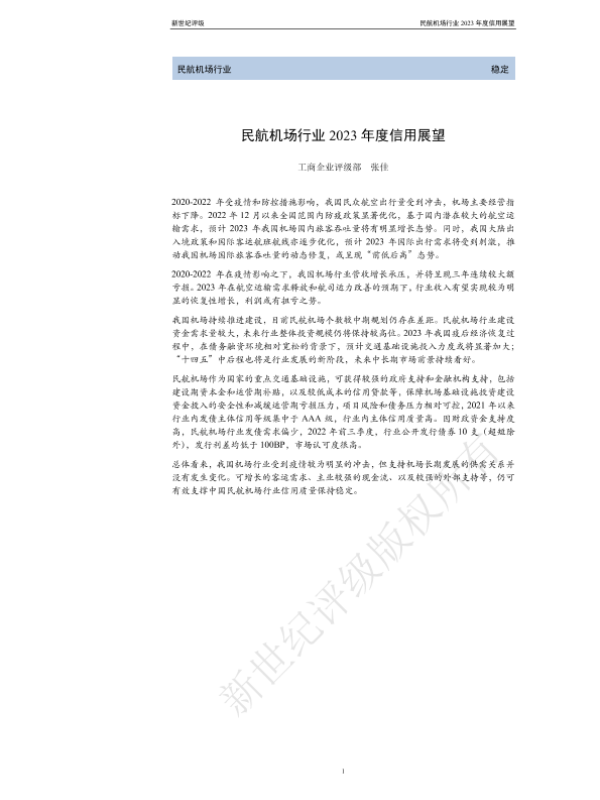 【新世纪评级】【2023】民航机场行业2023年度信用展望-16页