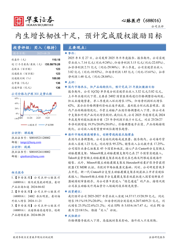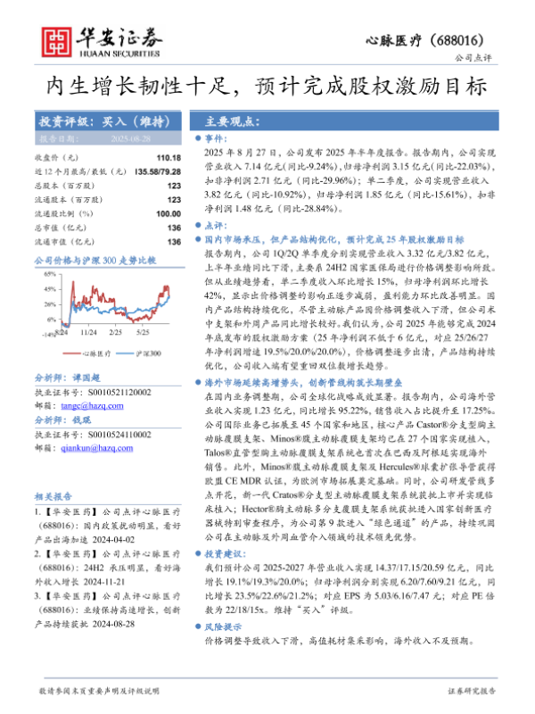 【华安证券】【20250828】心脉医疗-内生增长韧性十足,预计完成股权激励目标-4页