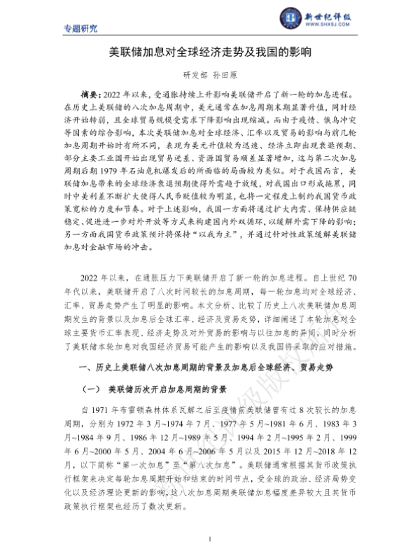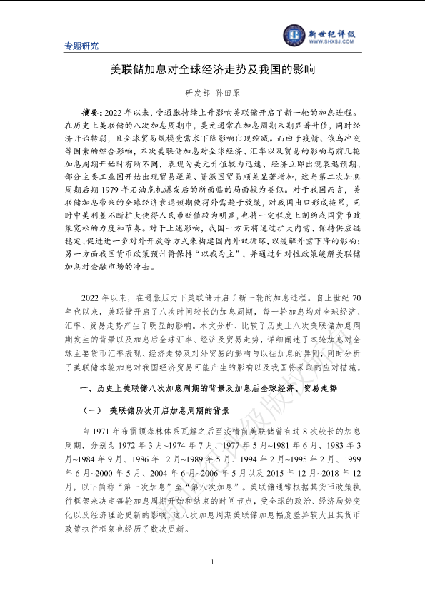 【新世纪评级】【20220101】美联储加息对全球经济走势及我国的影响-10页