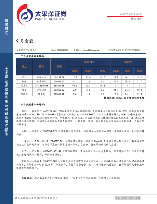 上市公司 9月金股 行业分析 投资策略 券商报告