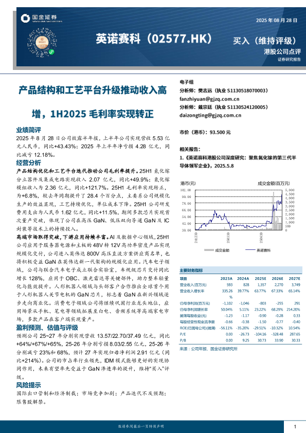 【国金证券】【20250828】英诺赛科-产品结构和工艺平台升级推动收入高增_1H2025毛利率实现转正-4页