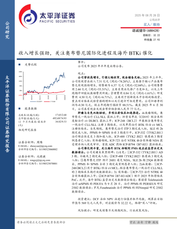 【太平洋证券】【20250828】诺诚健华-收入增长强劲,关注奥布替尼国际化进程及海外 BTKi催化-5页