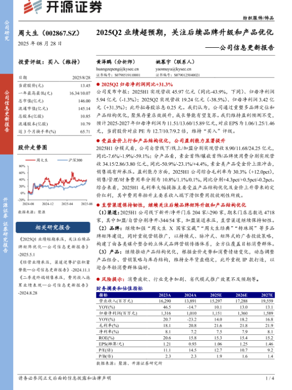 【开源证券】【20250828】周大生-2025Q2业绩超预期,关注后续品牌升级和产品优化-4页