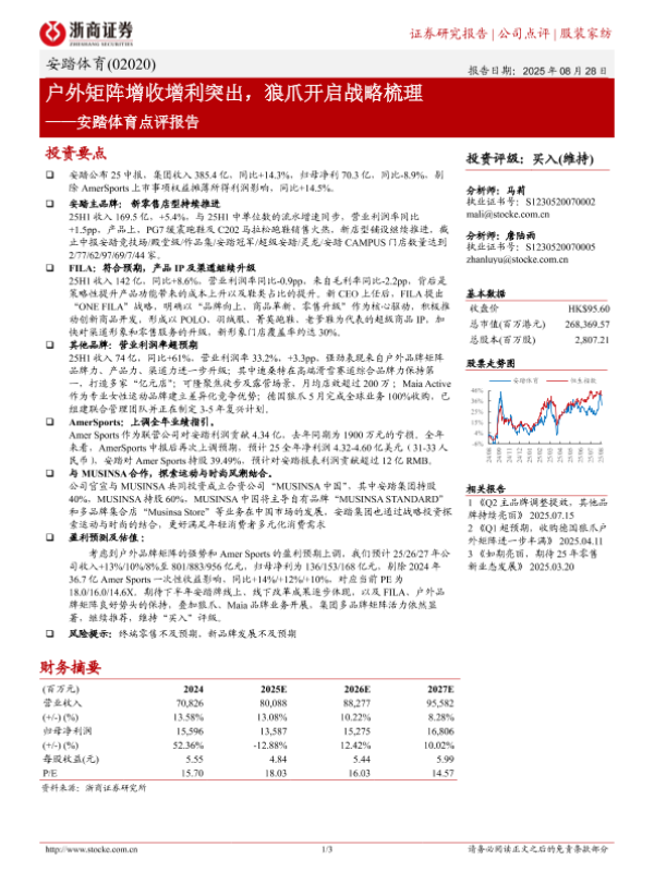 【浙商证券】【20250828】安踏体育-户外矩阵增收增利突出,狼爪开启战略梳理-3页