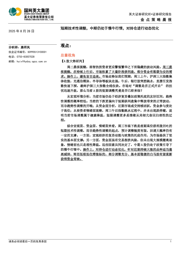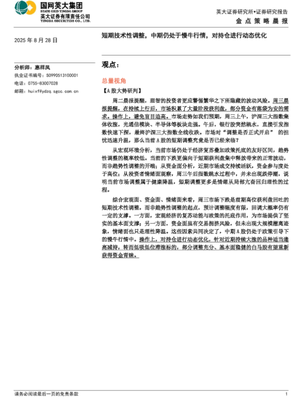 【英大证券】【20250828】短期技术性调整,中期仍处于慢牛行情,对持仓进行动态优化-4页