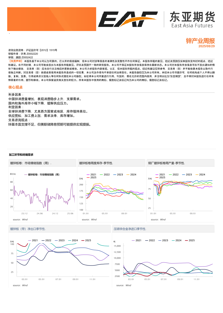 【东亚期货】【20250829】锌产业周报-5页