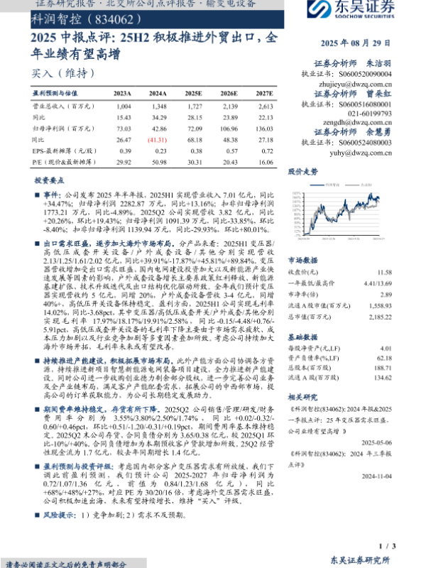 【东吴证券】【20250829】科润智控-25H2积极推进外贸出口,全年业绩有望高增-3页