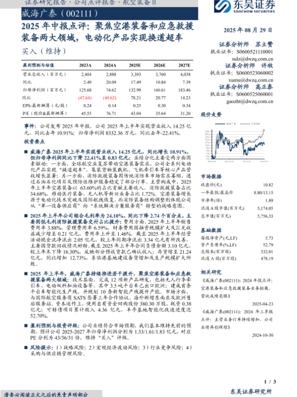 【东吴证券】【20250829】威海广泰-2025年中报点评:聚焦空港装备和应急救援装备两大领域,电动化产品实现换道超车-3页