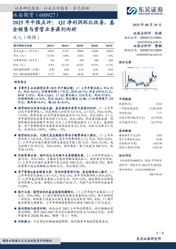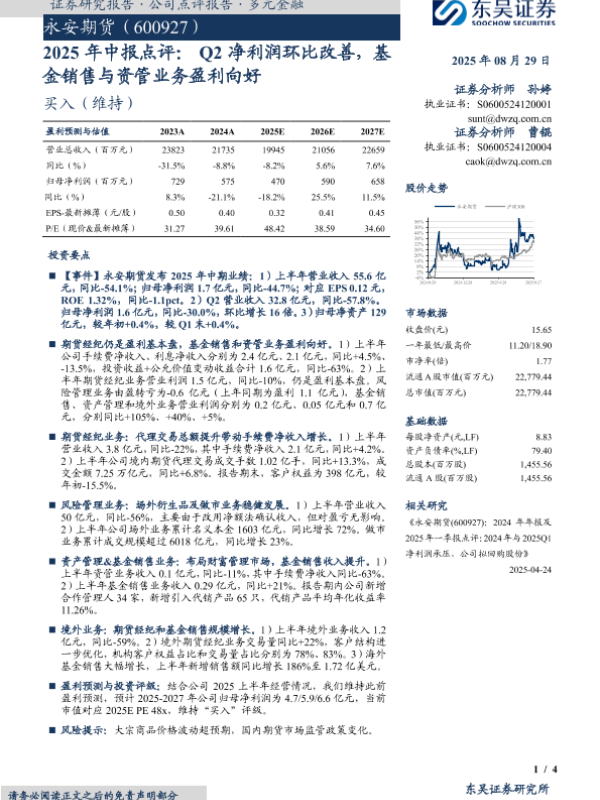 【东吴证券】【20250829】永安期货-2025年中报点评:Q2净利润环比改善,基金销售与资管业务盈利向好-4页