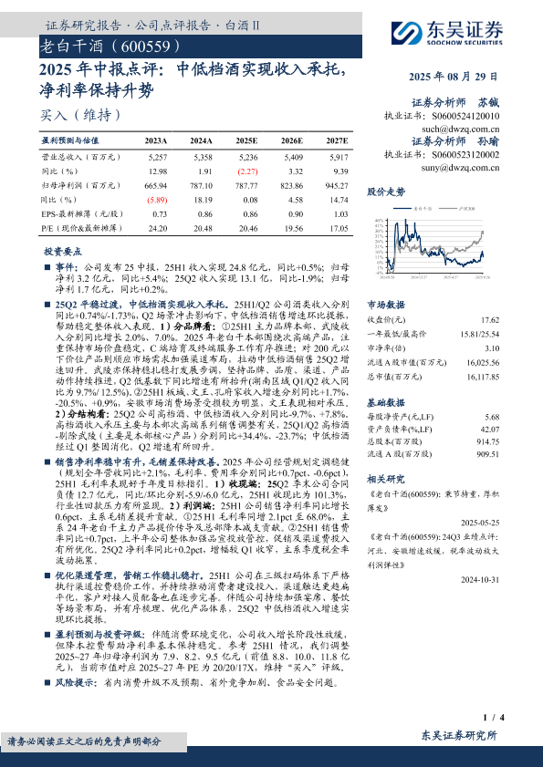 【东吴证券】【20250829】老白干酒-2025年中报点评:中低档酒实现收入承托,净利率保持升势-4页