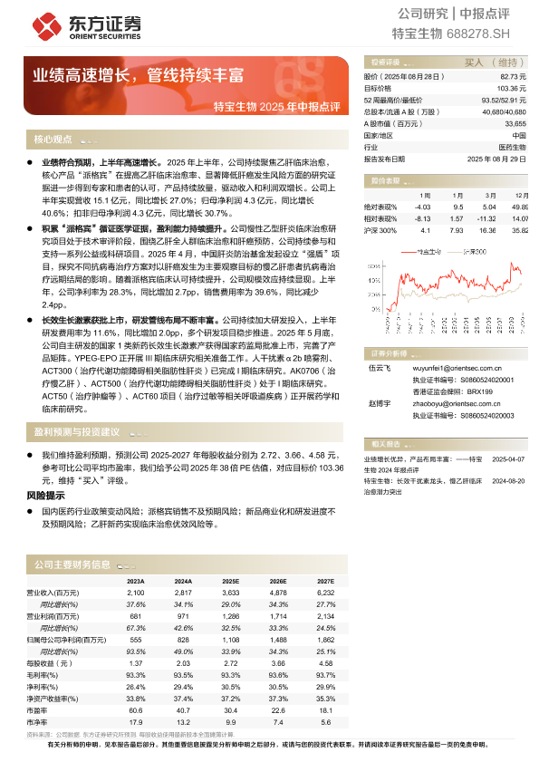 【东方证券】【20250829】特宝生物-业绩高速增长,管线持续丰富-5页