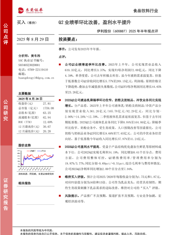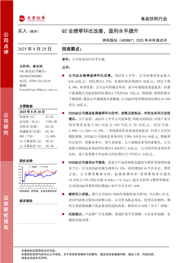 【东莞证券】【20250829】伊利股份-2025年半年报点评-3页