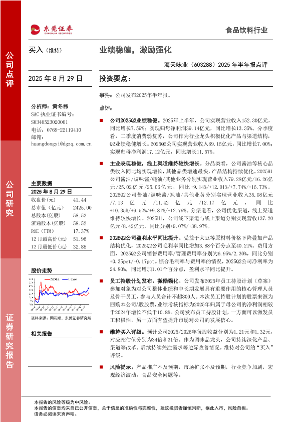 【东莞证券】【20250829】海天味业-2025年半年报点评-3页