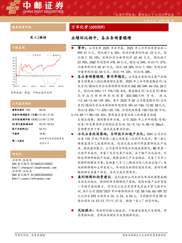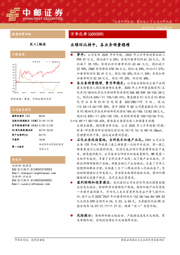 【中邮证券】【20250829】万华化学-业绩环比持平,各业务销量稳增-5页