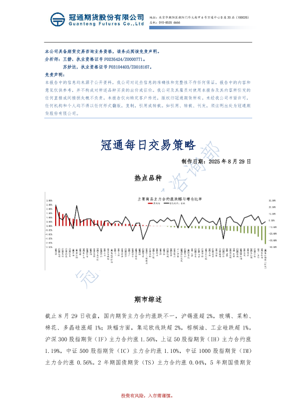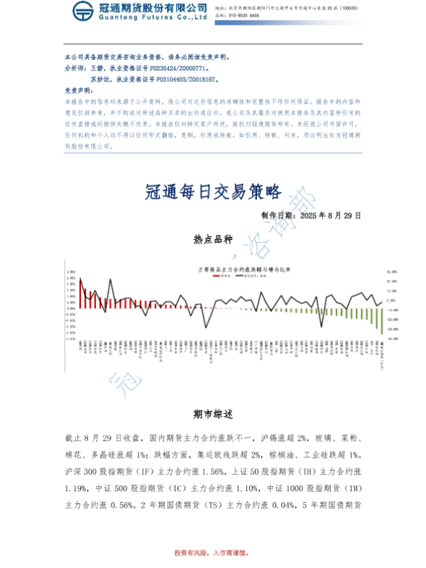 【冠通期货】【20250829】冠通每日交易策略-7页