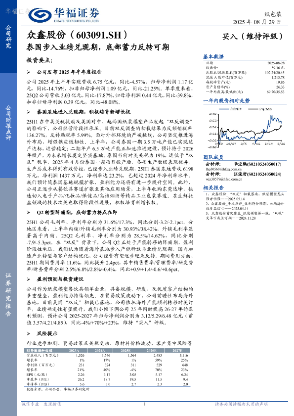 【华福证券】【20250829】众鑫股份-泰国步入业绩兑现期,底部蓄力反转可期-3页