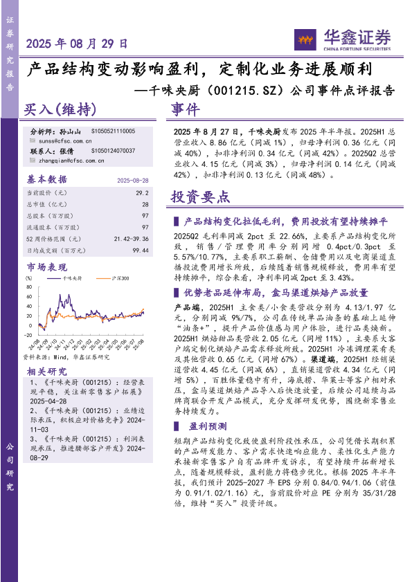 【华鑫证券】【20250829】千味央厨-产品结构变动影响盈利,定制化业务进展顺利-5页