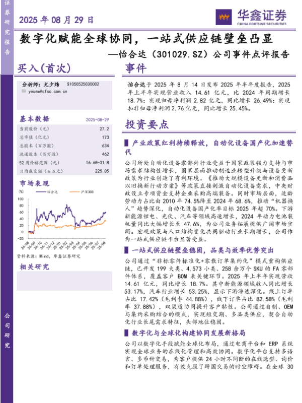 【华鑫证券】【20250829】怡合达-数字化赋能全球协同,一站式供应链壁垒凸显-5页