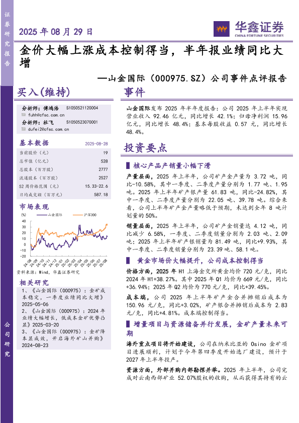 【华鑫证券】【20250829】山金国际-金价大幅上涨成本控制得当,半年报业绩同比大增-5页