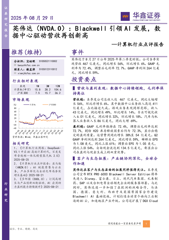 【华鑫证券】【20250829】英伟达-NVIDIA:Blackwell引领AI发展,数据中心驱动营收再创新高-5页