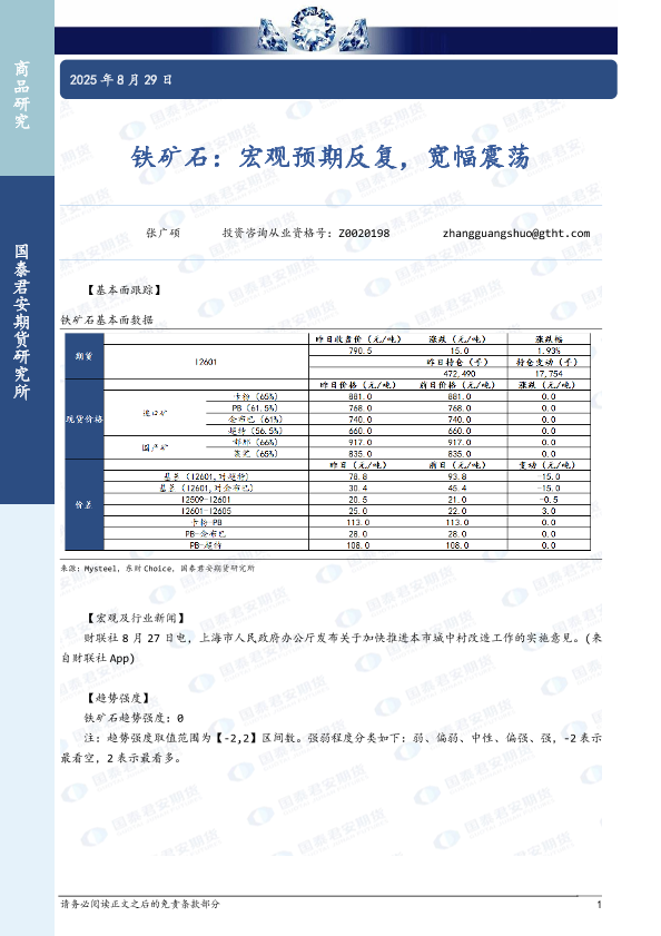 【国泰君安期货】【20250829】铁矿石-宏观预期反复,宽幅震荡-2页