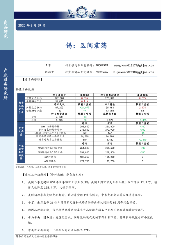 【国泰君安期货】【20250829】锡-区间震荡-3页