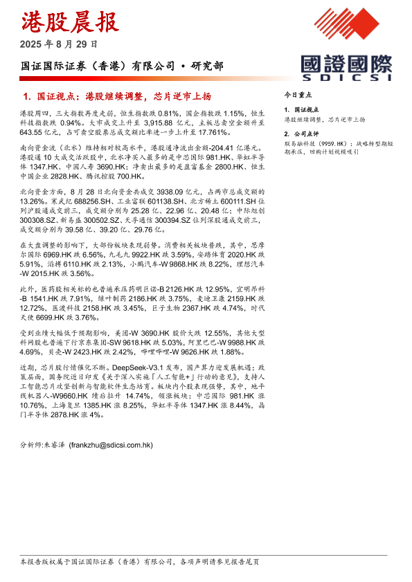 回购计划 芯片股 业绩报告 联易融科技 港股