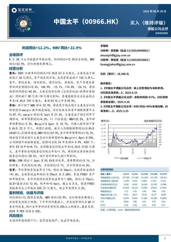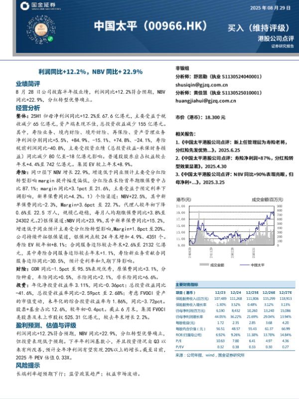【国金证券】【20250829】中国太平-利润同比+12.2%_NBV同比+22.9%-4页
