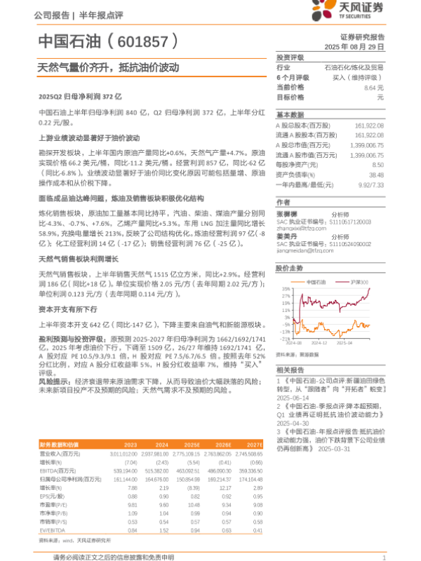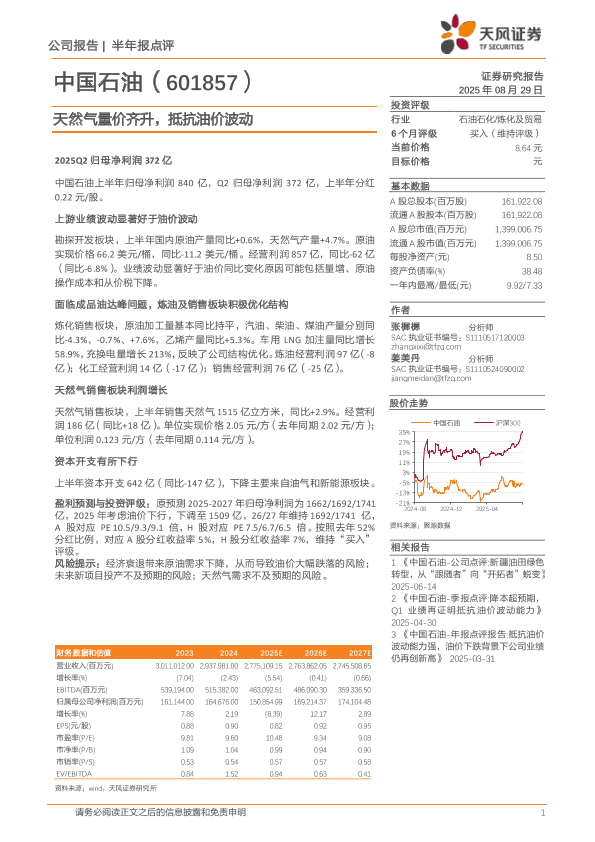 【天风证券】【20250829】中国石油-天然气量价齐升,抵抗油价波动-3页