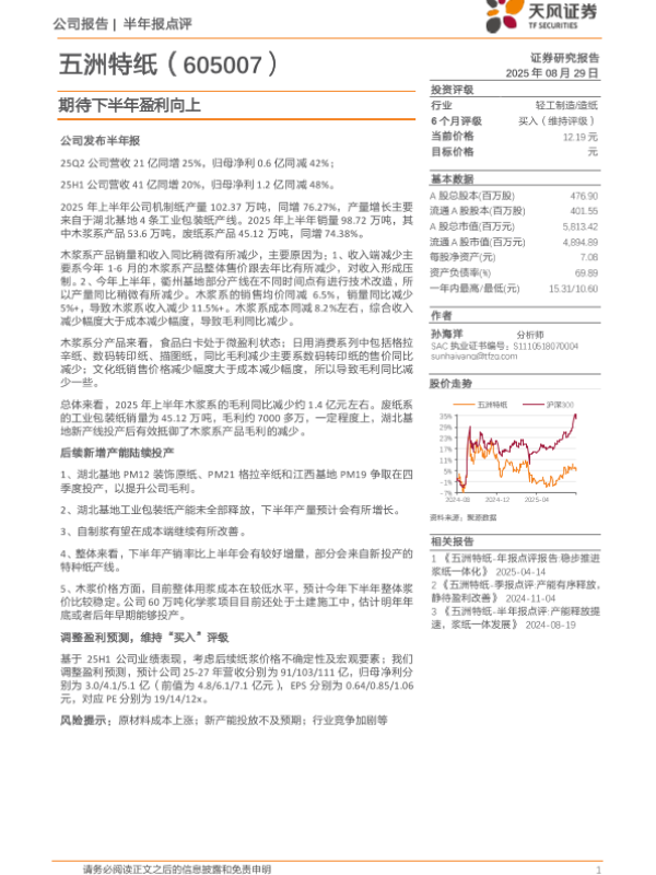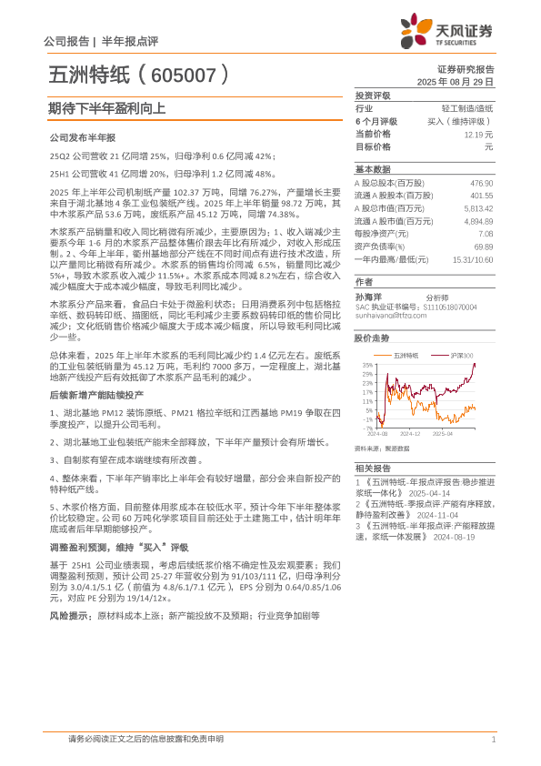 【天风证券】【20250829】五洲特纸-期待下半年盈利向上-4页