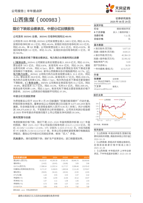 【天风证券】【20250829】山西焦煤-煤价下跌致业绩承压,中报分红回馈股东-3页